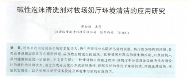 1、保全福、王亮在《奶?!冯s志發(fā)表論文《堿性泡沫清洗劑對牧場奶廳環(huán)境清潔的應用研究》